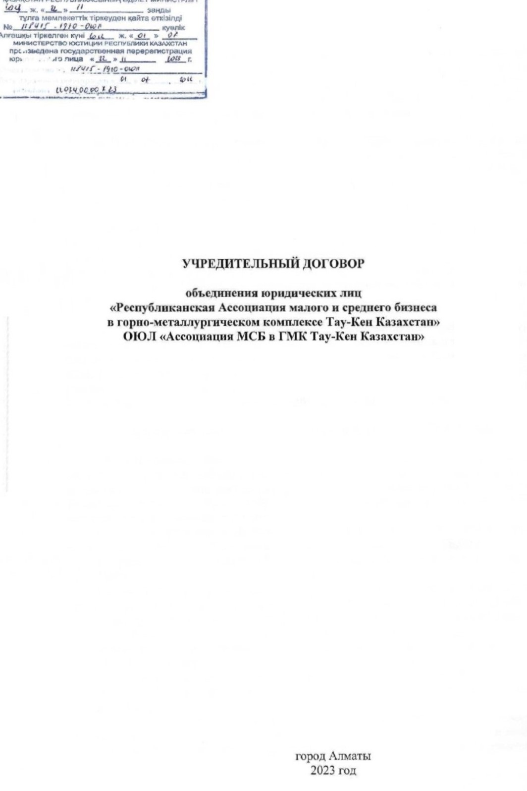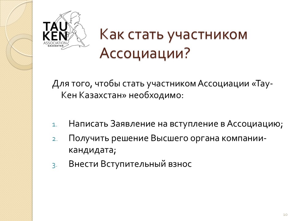 Представление такого заявления означает волеизъявление кандидата на вступление в члены ОЮЛ «Ассоциация МСБ в ГМК Тау-Кен Казахстан» и на безусловное присоединение к учредительному договору ОЮЛ «Ассоциация МСБ в ГМК Тау-Кен Казахстан».