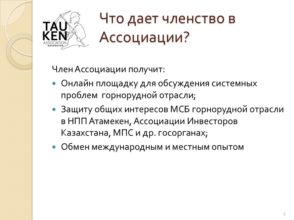 ОЮЛ «Ассоциация МСБ в ГМК Тау-Кен Казахстан» открыта для вступления в нее новых членов.
